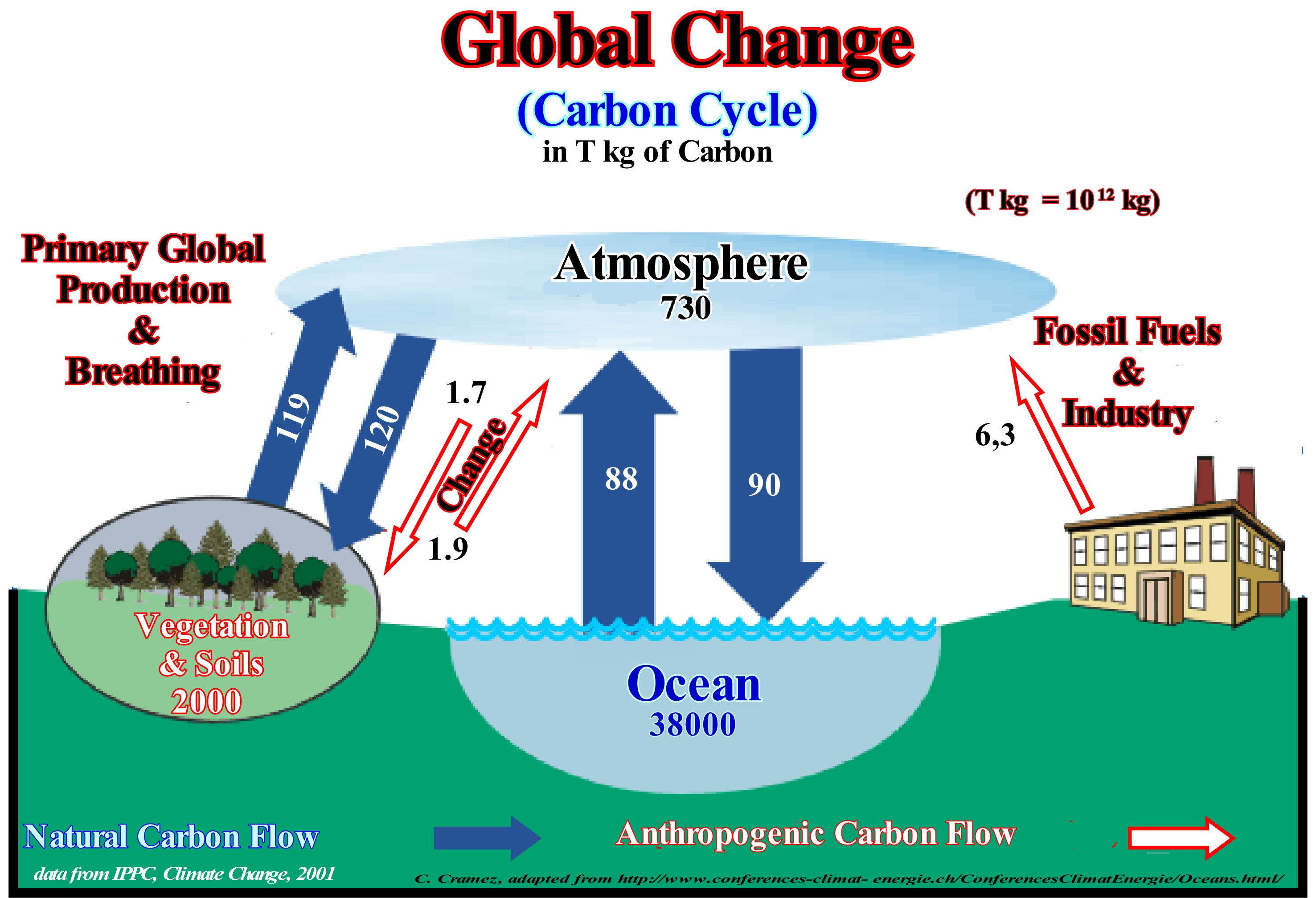 A part of the solar radiation is absorbed by the clouds or reflected by the Earth's surface. Only a small fraction is absorbed by the Earth. The rising temperature of the Earth's surface induced by the absorption of the solar radiation causes a radiation of infrared rays to the atmosphere and a loss of heat, that is dissipated in the space. The presence of greenhouse gases in the atmosphere prevents some of the infrared rays from leaving the atmosphere, which contributes to their heating. This system, which is natural, seems to have been altered by the production of greenhouse gases produced by man. It is very often heard the atmosphere acts as the greenhouse of a garden heating the Earth in the same way as a greenhouse is heated by the impermeability of the glass walls. The reasoning is as follows: (i) Like glass, the gases in the atmosphere let in the light and prevent the heat from escaping ; (ii) This natural warming is called the greenhouse effect ; (iii) Greenhouse gases (CO2, CH2, NO and others) are transparent to certain wave-lengths of the sun's rays and allow them to enter the atmosphere and reach the Earth ; (iv) Clouds, glaciers and other particles reflect about 30% of the solar radiation, but the oceans and continent absorb the rest, that returns to space as infrared radiation ; (v) Greenhouse gases and clouds prevent part of the infrared radiation from escaping, thereby blocking the heat near the Earth's surface by heating the lower atmosphere. However, many geoscientists consider that all this as mere conjecture based on a false comparison. For them, the atmosphere does not function as a garden greenhouse (half closed), in which it is the convection of air in a closed system that heats the greenhouse.