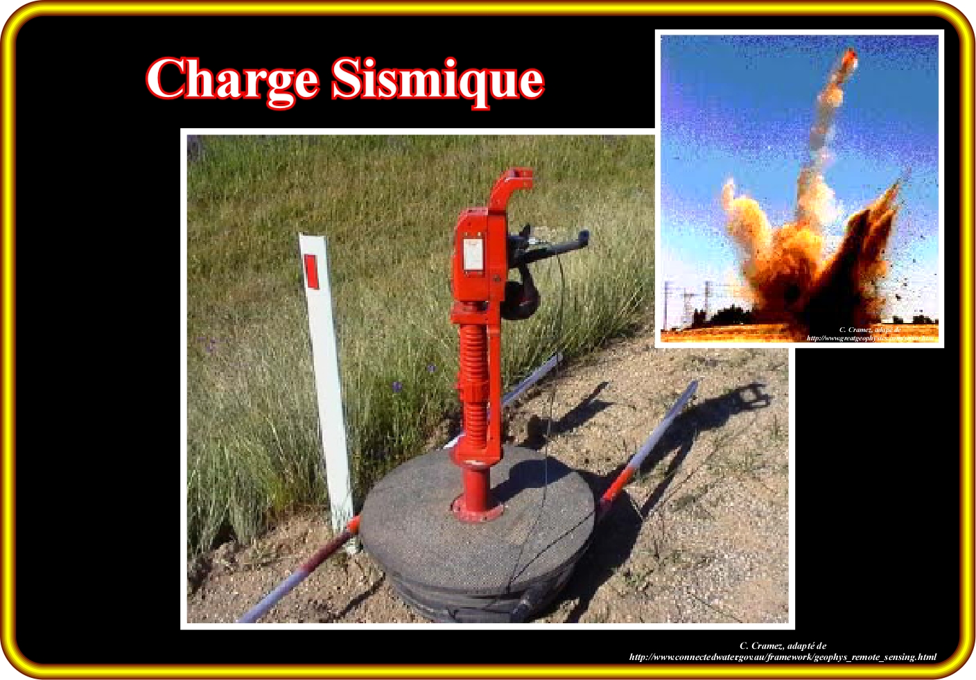 Toute explosion sur la surface ou à l'intérieur de la Terre produit une onde de choc. Détectant les ondes de réflexion ou de réfraction, provenant d'une source, à la surface terrestre, les géoscientistes sont en mesure de cartographier les structures géologiques (pièges) dans lesquelles, parfois, ont trouve des hydrocarbures. La façon dont ces ondes traversent la Terre permet, également, de déterminer les éléments géologiques qui contrôlent l'écoulement des eaux souterraines, comme la géométrie et stratigraphie des aquifères alluviaux ou des paléo-chenaux, où l'eau souterraine s'écoule plus facilement. Fondamentalement, il y a deux types de méthodes sismiques : (i) Sismique de Réflexion et (ii) Sismique de Réfraction. La première peut être utilisée soit en mer soit en terre. Elle est, principalement, utilisée dans les recherches des hydrocarbures. La seconde, au début, a été utilisée dans l'exploration des hydrocarbures, mais, actuellement, elle est, surtout, utilisée dans la géotechnique. L'onde de choc créée soit par le choc d'une masse sur une plaque de métal (en surface) ou par l'explosion d'une charge sismique dans le sol (ou dans l'eau), est réfléchie dans les différentes couches sédimentaires de façon différente, ce qui permet la cartographie des couches sédimentaires. Les couches plus dures et résistantes, c'est-à-dire, les plus impédantes (l'impédance est produit de la densité par la vitesse des ondes sismiques) sont celles qui créent une onde réfléchie avec le signal plus fort. Bien que les principes des deux méthodes sismiques soient les mêmes, l'équipement et les procédures d'acquisition différent beaucoup. En terre, la source d'énergie est, généralement, la dynamite (placée dans un petit puits) ou un mécanisme vibrant appelé vibroseis (placé dans des camions). Contrairement à la dynamite, le signal du vibroseis n'est pas impulsif. Il dure entre 7 et 40 secondes. Pour envoyer son signal, le vibroseis vibre avec des fréquences variant entre 10 et 60 Hz. Comme l'espace entre les réflecteurs (interfaces sédimentaires) est plus petit que la longueur d'onde du signal du vibroseis, l'enregistrement des réflexions se superpose, ce qui rend les données brutes (non traitées) difficiles à interpréter. Les traces doivent être traitées pour produire des traces de substitution avec un signal équivalent à celui de la source.
