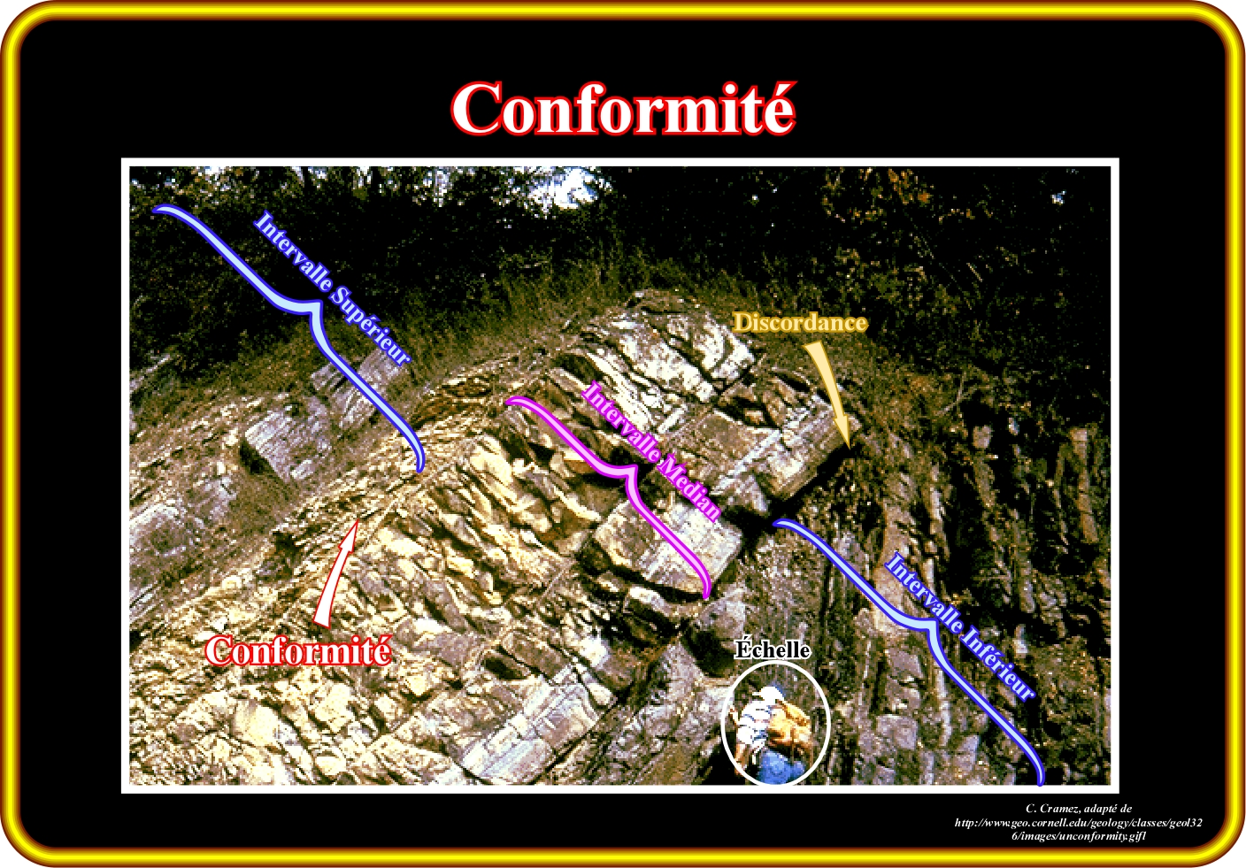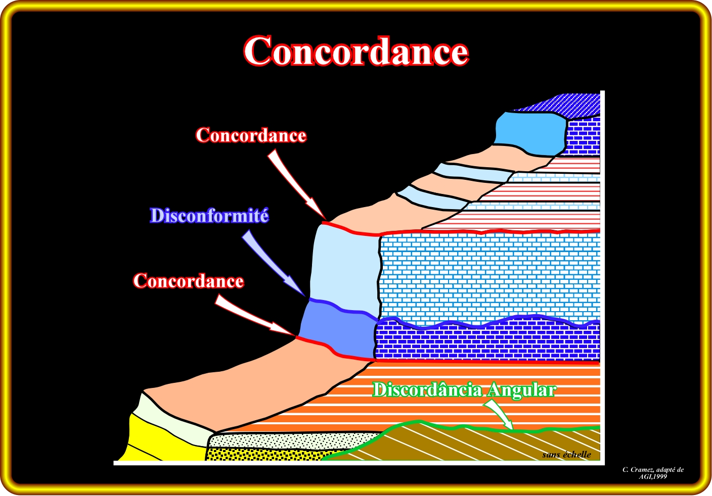 Terme utilisé pour indiquer qu'il n'y a aucune évidence physique d'érosion ou de non-dépôt le long de la surface, qui sépare les strates plus jeunes de l'intervalle formé par les strates plus anciens.