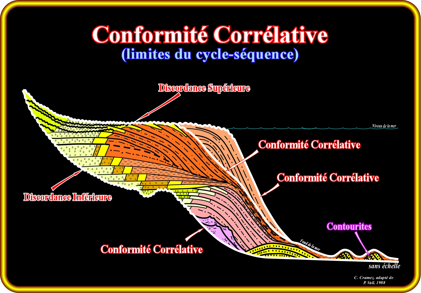 Surface qui corrèle latéralement (en aval) avec une discordance. Cette corrélation est très importante, car elle permet de dater la discordance (où il y a continuité de sédimentation ou le plus petit hiatus de déposition). La surface en question se trouve à la base des sédiments déposés lors d'une chute relative du niveau de la mer d'un cycle-séquence (talus continental inférieur ou plaine abyssale).