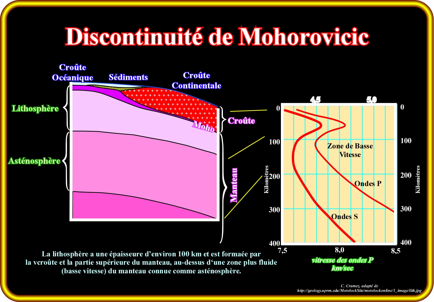 Discontinuité de Mohorovicic (Moho)..........................................................................................Mohorovicic discontinuity