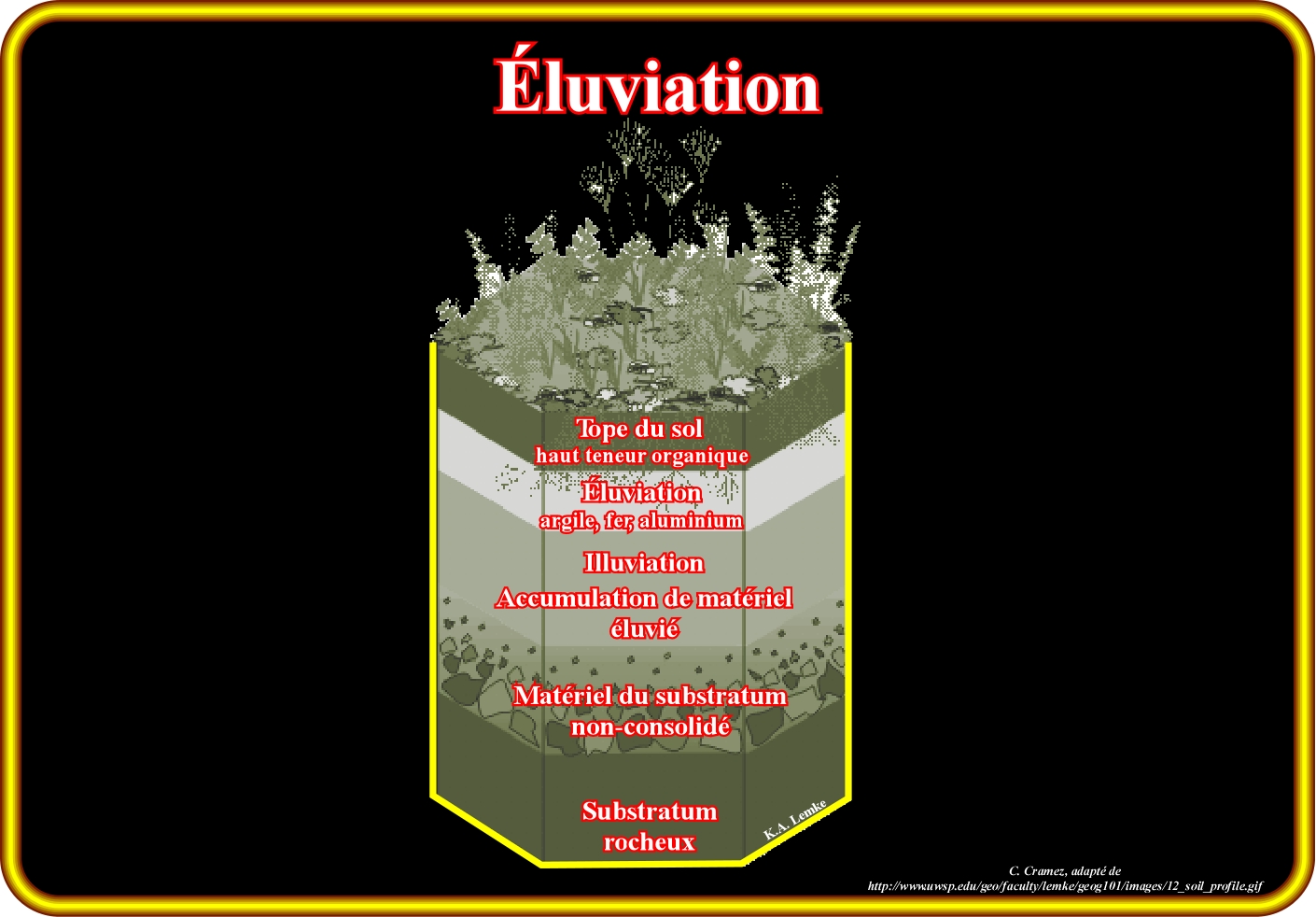 Division de l'histoire géologique en: (i) Éons (ii) Ères, (iii) Périodes, (iv) Époques et (v) Âges, déterminés à partir de la stratigraphie et paléontologie.