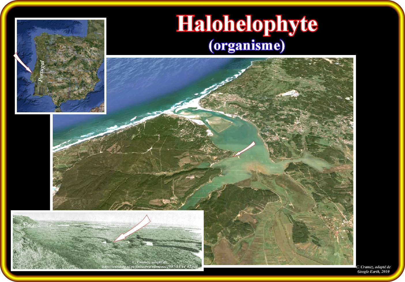 Organisme qui vit enraciné ou enterré dans la boue salée. Certains géoscientistes le considèrent comme un halohelophyte (helohalophyte, les deux écritures semblent correctes). Synonyme de Halophyte.