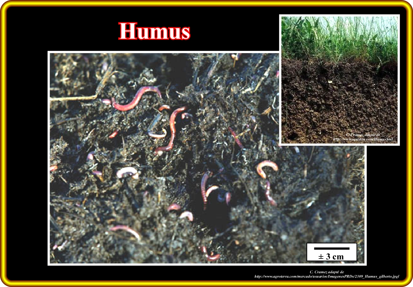 Humus ou terreau est la matière organique déposée dans le sol, résultant de la décomposition des animaux et plantes mortes et ou de leurs dérivés. Le processus de formation de l'humus est appelé humification, qui peut être naturel, lorsqu'elle est produite spontanément par les bactéries et champignons du sol (organismes décomposeurs), ou artificiel, quand l'homme induit la production d'humus par adjonction de produits chimiques et eau dans un sol peu productif. Divers agents extérieurs tels que l'humidité et température contribuent à l'humification. Dans la formation de l'humus il y a libération de différents nutriments, particulièrement de l'azote. Le compostage est une forme de formation d'humus pour l'utiliser en tant qu’engrais organique dans l'agriculture. Le lombricompostage ou vermicompostage est l'utilisation de vers de terre dans la production de l'humus qui décomposent les résidus et excréments des animaux ainsi que les déchets organiques urbains, ce qui contribue à l'amélioration et séquestration du carbone des sols et à l’élimination d’odeurs désagréables. Le lombricompostage est un processus assez répandu, surtout chez les résidents des régions rurales, une fois que les vers sont des véritables machines de nettoyage. Lorsqu’on met la bonne quantité de vers (environ 5.000 unités par mètre carré) dans un sol de 10 x 0.80 x 0.40 mètres, en 30 à 35 jours (le compostage normal prend 100-300 jours), on peut transformer 2.5 tonnes de déchets organiques en humus. Leurs excréments des vers, qui mangent les déchets, ont environ 2 millions de bactéries par gramme, ce qui enrichit le sol en laissant disponible aux plantes presque tout le complexe minéral (5,5 x plus d'azote, 2x plus de calcium, 2,5 x de plus de magnésium, 7x d plus phosphore et 11x de plus de potassium que le sol originel). La formation de l'humus est biogénique. Elle peut se faire par simple oxydation de la matière organique morte, en l'absence d'organismes vivants (ce processus est accéléré lorsque les organismes ingèrent du matériel organique ou sécrètent des enzymes qui la transforment).