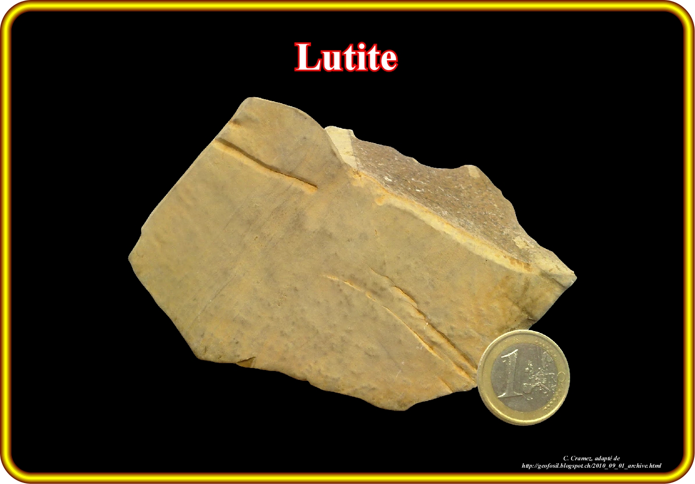 Les lutites, aussi appelés pélites, sont une classe de roches sédimentaires clastiques dont les éléments ont un diamètre inférieur à 1 / 16 mm (moins de 63 microns). Le terme plus utilisé pour décrire plus les sédiments composés par ce type de particules est limon, silte et argile (pour le plus petits, moins de 20 microns). Pour les sédiments consolidés (cimentés), les termes siltite et argillite sont parfois utilisés. Cependant, originalement (en anglais) le terme argillite, implique un faible métamorphisme. Les lutites se présentent, parfois, sous une forme argileuse (pierre d’argile), ce qui leur donne une forte rétention d’eau, autrement dit, une faible perméabilité (http://fr.wikipedia.org/wiki/Lutito). Comme l'illustre cette figure, les lutites sont, souvent, associés à des pierres précieuses, comme, par exemple, à des émeraudes.. En réalité, les célèbres mines de la région de Muzo (Colombie), les émeraudes sont associées à des brèches de lutites et à des veines de calcite. Le terme lutite est, également, utilisé dans la classification des calcaires clastiques. Pettijohn donne les limites descriptives suivantes dans la base de la taille des grains, en évitant l'utilisation de termes tels qu’argile ou argileuse, qui impliquent une certaine composition chimique : (i) Gravier, psefite (grec), rudite (latin) ; (ii) Sable, psamite (grec), grès (latin) et (iii) Argile, pélite (grec), lutite (Latin). En anglais, en fonction de la taille des grains, les lutites s’appellent appelé ‘claystones’, ‘siltstones’ ou ‘schistes”. Les lutites lorsqu'ils sont soumis à la compaction (poids de sédiments ou contraintes tectoniques) développent une fissillité préférentielle et deviennent des schistes. Ces termes anglais ont été traduits en français par certains géoscientistes, mais le plus souvent, la traduction n’exprime pas, correctement, la définition originelle du terme. Les cas les plus flagrants sont de schiste, argillite et schiste argileux, une fois qu’un schiste peut ne pas être métamorphique ; argillite est, en anglais, une roche légèrement métamorphique (anchimétamorphique) et argile n'est pas une roche, mais plutôt une granulométrie. Par conséquent, souvent, qu'il est préférable d'utiliser les termes anglais, car il y a d'autres termes, tels que ‘shale’, qui n’ont pas traduction en français.