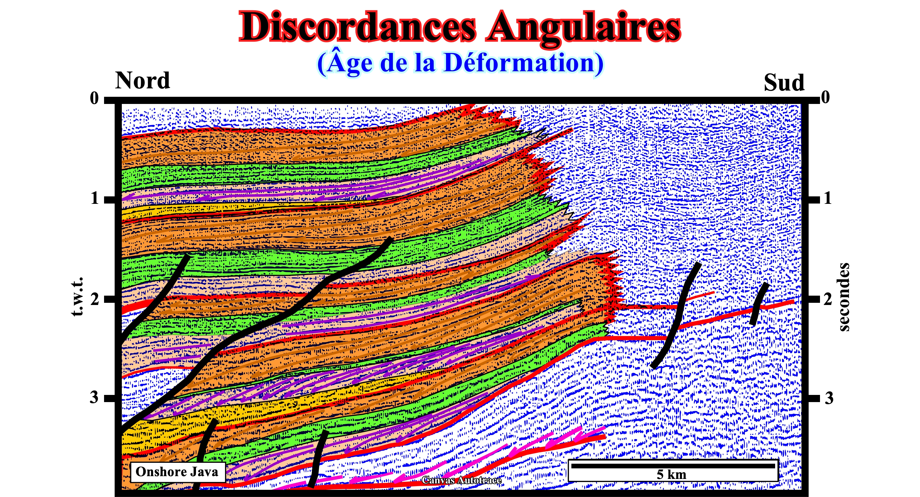 - Les discordances associées à la croissance et soulèvement des anticlinaux ;