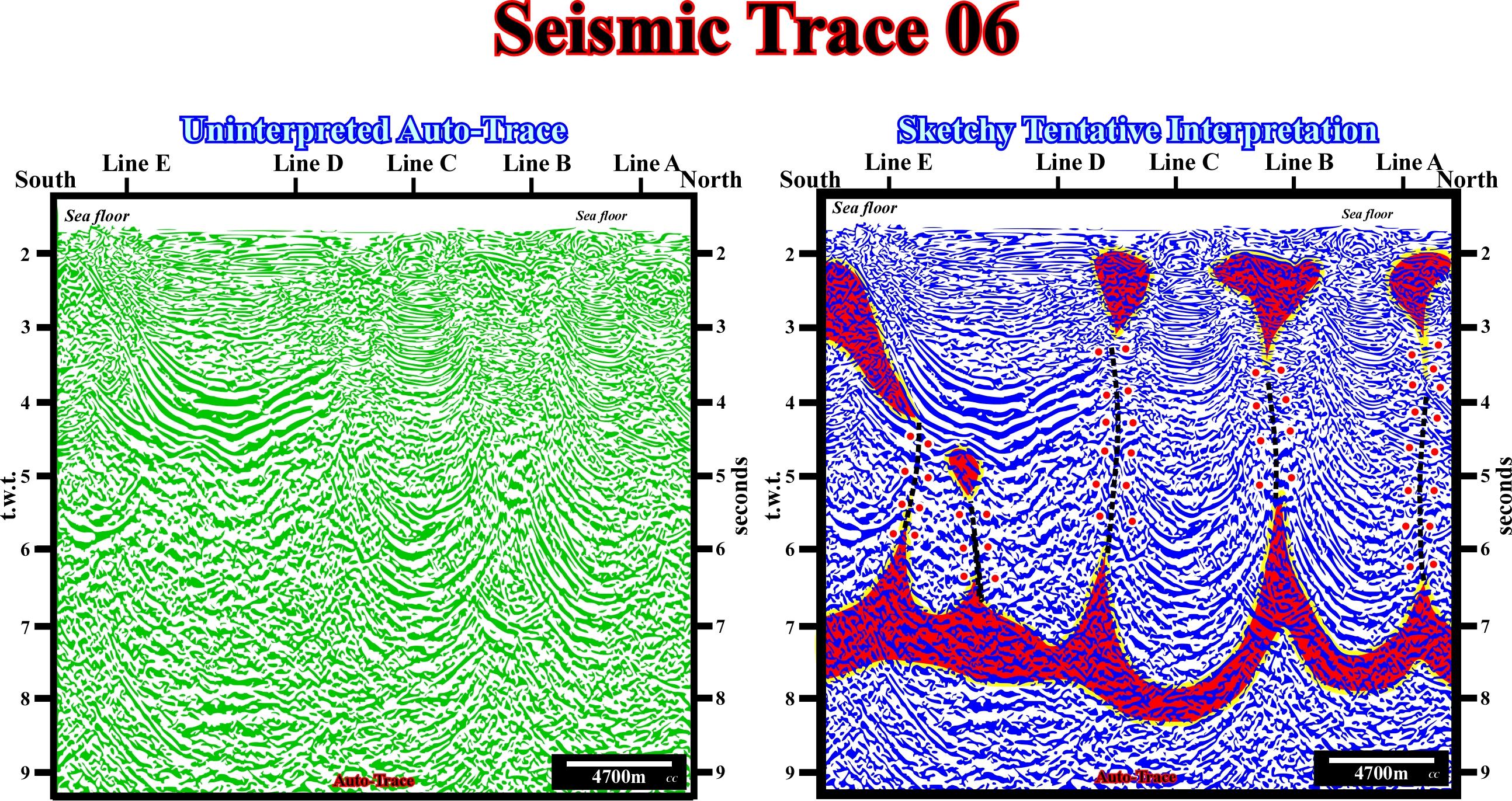 Fig. 369- Propose tentative geological interpretations of un-interpreted autotraces of the the seismic lines located on this time slice