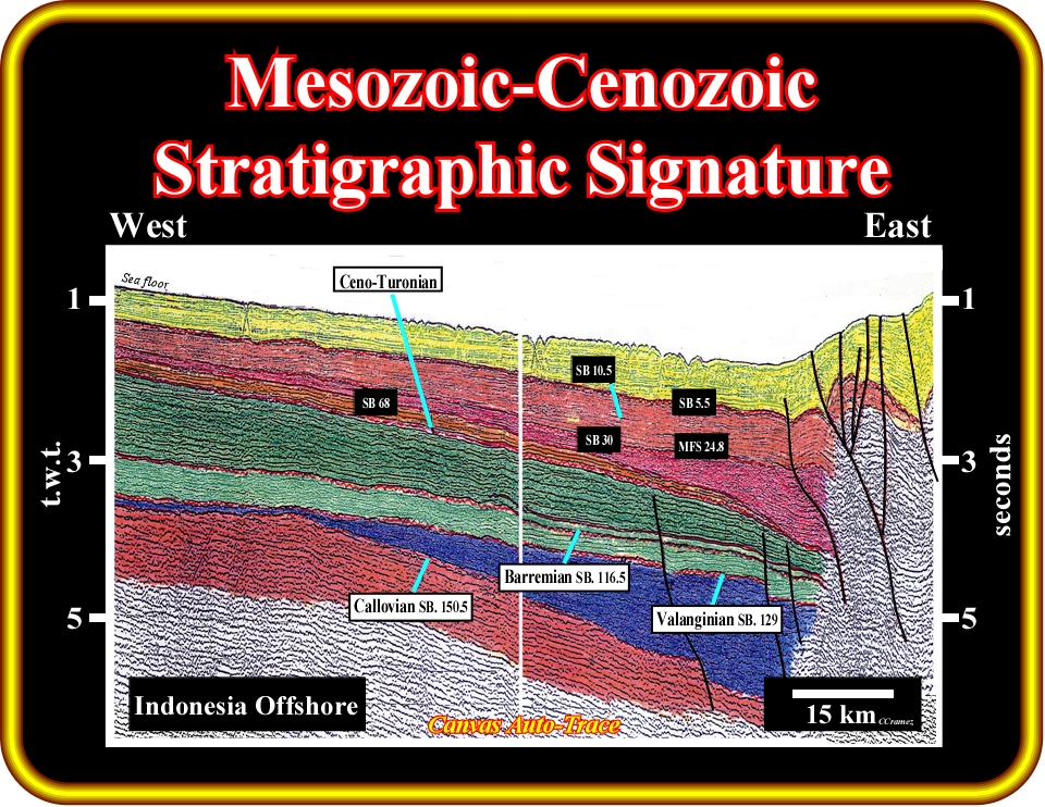 Plate 483 This stratigraphic signature was the result of sequential stratigraphic and geohistory back-stripping analysis of data from the western Atlantic-offshore, Gulf of Mexico-Alabama offshore and Texas, Maracaibo Basin (Venezuela), Canterbury (New Zealand), Northeast Java, Mahakam (Indonesia), Sabah, Bahamas and Ross-Sea (Antarctica).